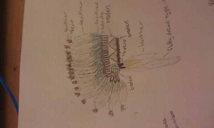 This is inspired by the Indian Chief Headresses. I've always liked them and thought why not make one myself.I took my faveourite elements from all of the sketches and put them together in one.